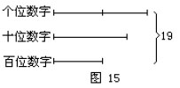 十位數(shù)字不知道是幾,那該怎樣算呢?可是由圖中可以看出,只要從19里減去十位數(shù)字后,那么得數(shù)一定是3的倍數(shù)。你不妨可以假設(shè)十位數(shù)字是0、1、2、……8、9,挨個地試一下。譬如十位數(shù)字假設(shè)是0,那么19-0=19,19不是3的倍數(shù),這個不行。十位數(shù)字假設(shè)是1呢,那么19-1=18,18是3的倍數(shù),18÷3=6,那么6就是百位數(shù)字了。別忙,百位數(shù)字是6,那么個位數(shù)字就是6×2=12,這可不行,因為12是兩個數(shù)字。那就再試一下。十位數(shù)字假設(shè)是4呢,19-4=15,15÷3=5,5×2=10,個位數(shù)字是10,這也不行。