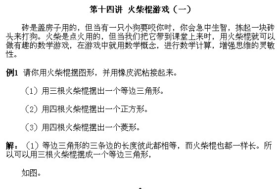 一年級(jí)奧數(shù)下冊(cè):第十四講 火柴棍游戲(一)