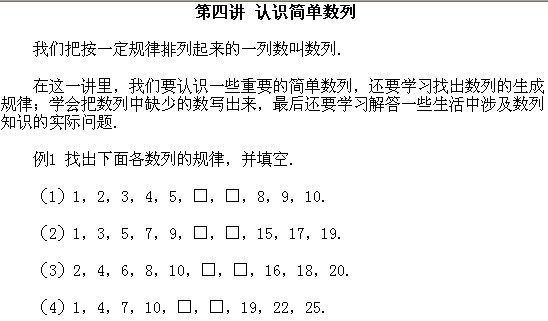 二年級(jí)奧數(shù)上冊(cè):第四講 認(rèn)識(shí)簡(jiǎn)單數(shù)列