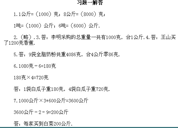 二年級(jí)奧數(shù)下冊(cè):附錄一 第一講 重量的認(rèn)識(shí)習(xí)題解答