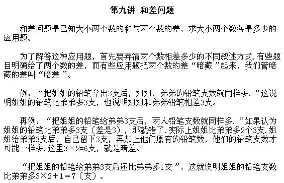 三年級(jí)奧數(shù)下冊(cè):第九講 和差問題