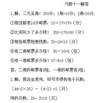 三年級奧數下冊:第十一講 雞兔同籠問題習題解答