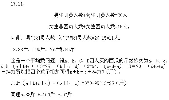 三年級奧數下冊:第十五講 綜合練習習題解答