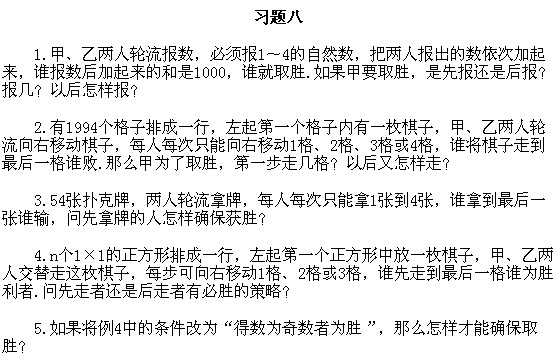 四年級(jí)奧數(shù)下冊(cè):第八講 數(shù)學(xué)游戲習(xí)題