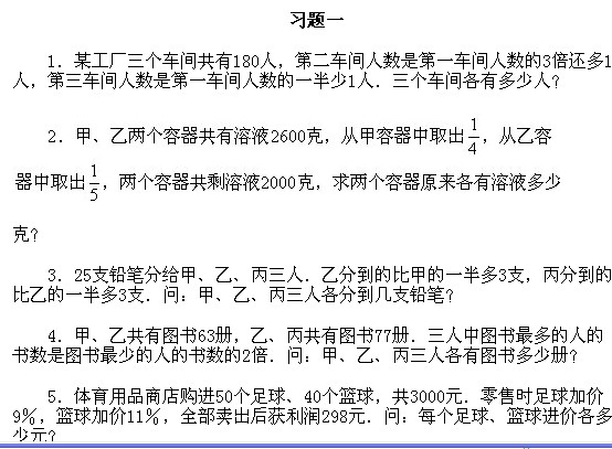 六年級奧數(shù)下冊:第一講 列方程解應(yīng)用題 習(xí)題