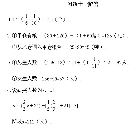 六年級奧數下冊:第十一講 綜合題選講(一)習題解答