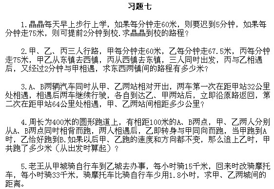 五年級奧數(shù)上冊:第七講 行程問題習(xí)題