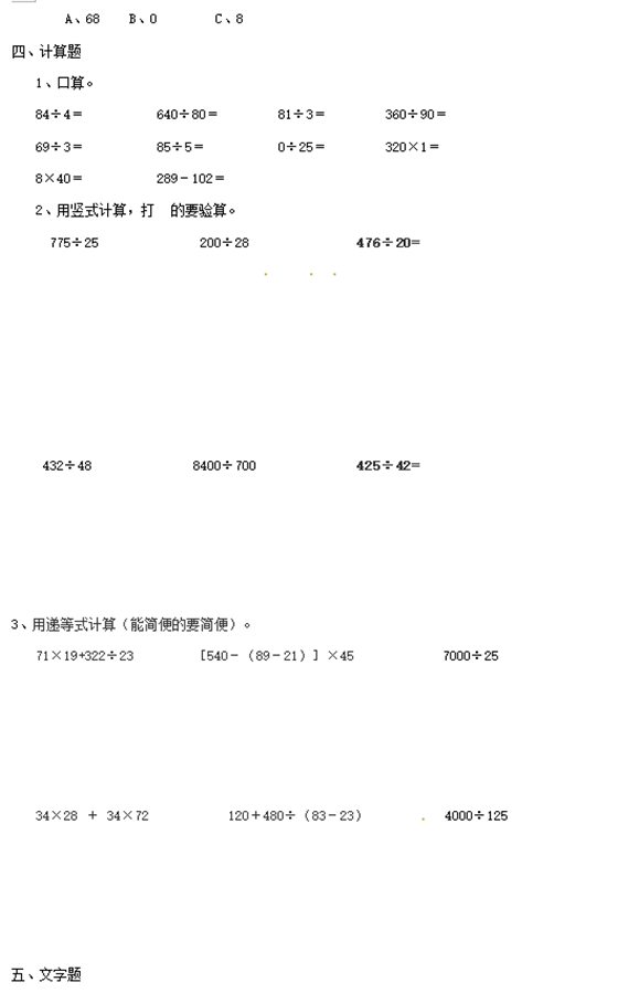 奧數(shù) > 小學(xué)試題庫 > 單元測試 > 數(shù)學(xué)單元測試 > 四年級數(shù)學(xué)單元測試上冊 > 正文