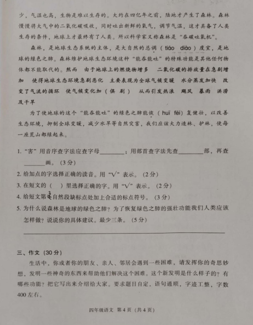 點擊查看更多:四年級語文下冊期末試題