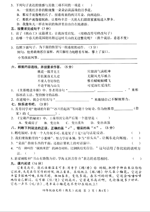 奧數 > 小學試題庫 > 期末試題 > 語文期末試題 > 四年級語文期末下冊 > 正文
