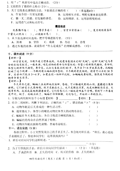 奧數(shù) > 小學(xué)試題庫 > 期末試題 > 語文期末試題 > 四年級語文期末下冊 > 正文